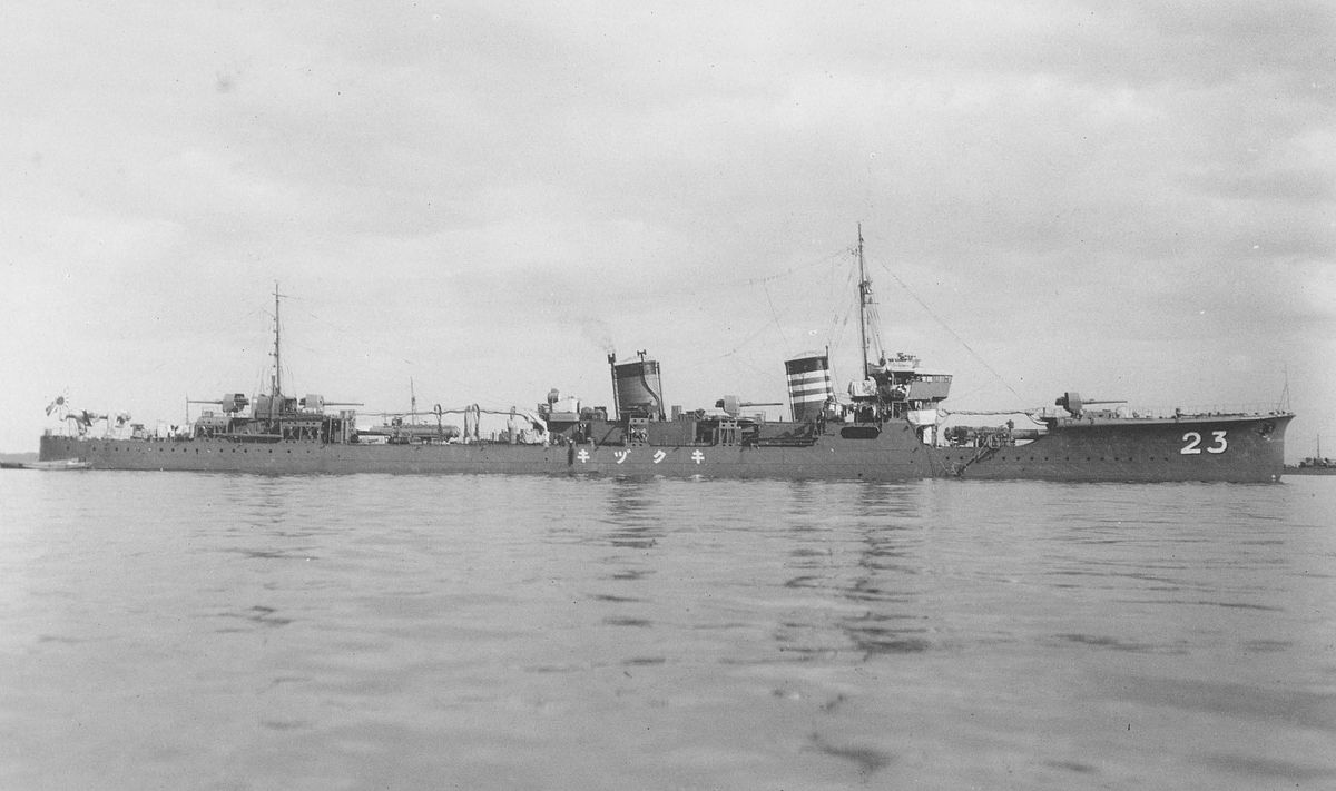 日本海軍の駆逐艦「菊月」の甲板の上に